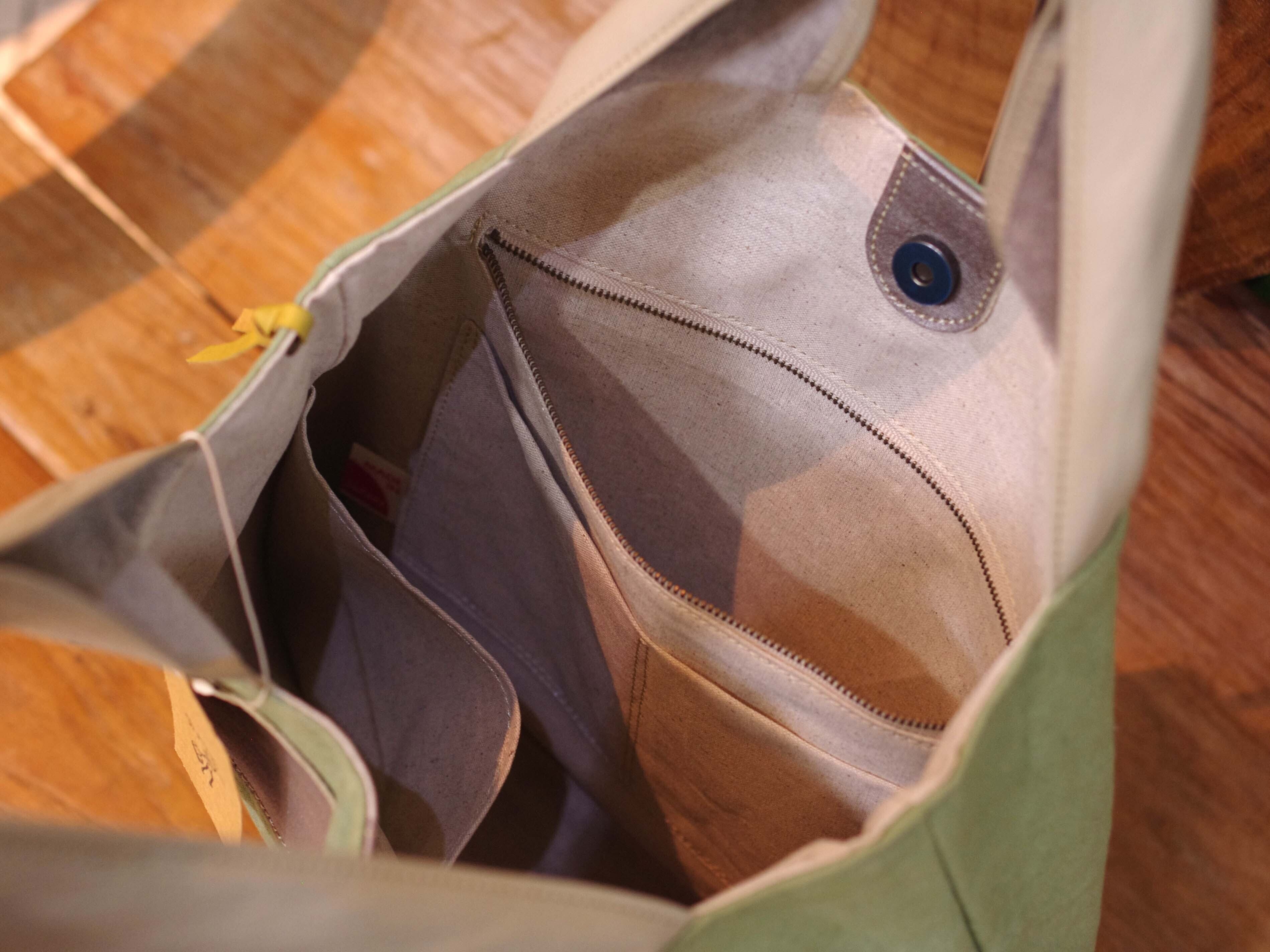 《帆布(グリーン)×丸革(シルバー)