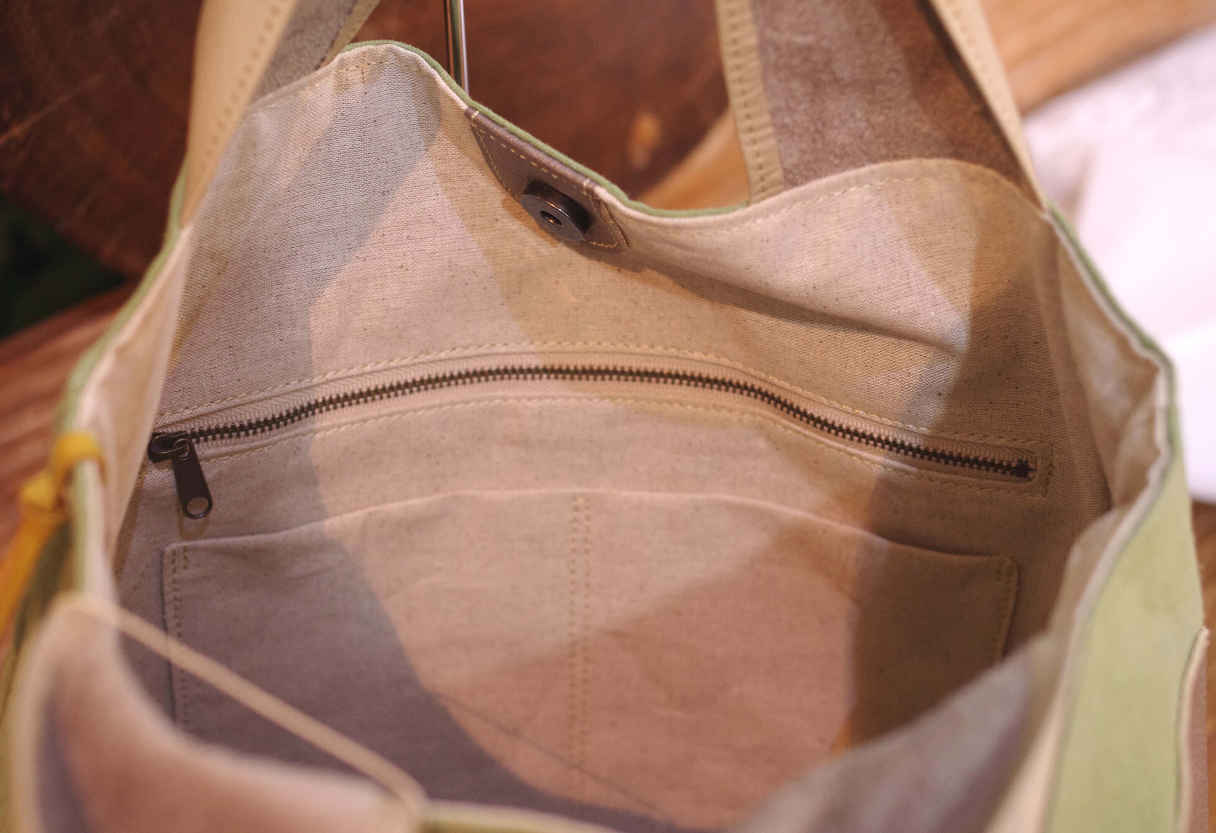 ・素材 帆布 × 牛革(パッチワーク・持ち手)